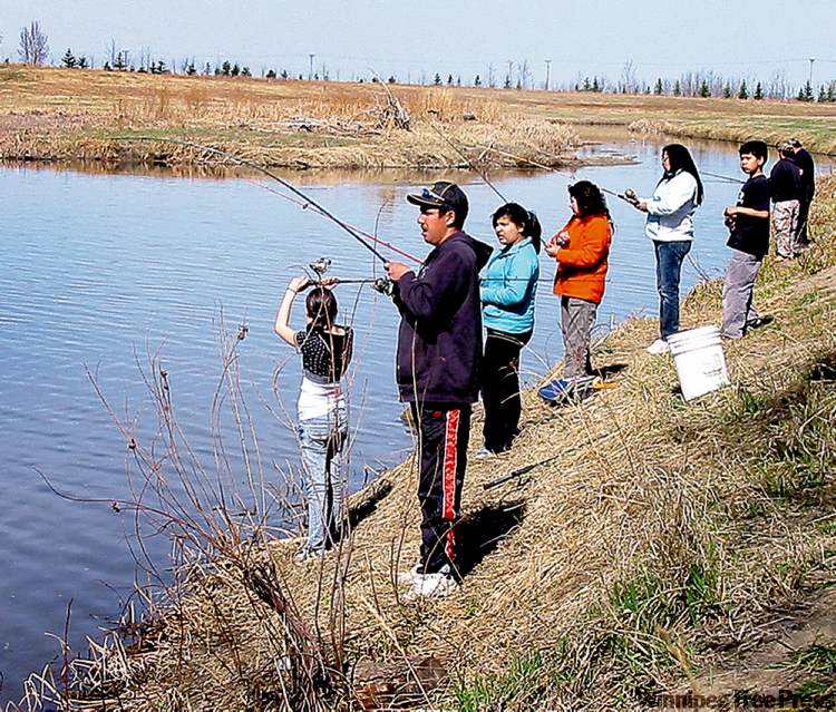 Morris Swan Shannacappo, Grand Chief of Southern Manitoba Chiefs, was spotted pulling in a plump one. "My first cast," he shouted.