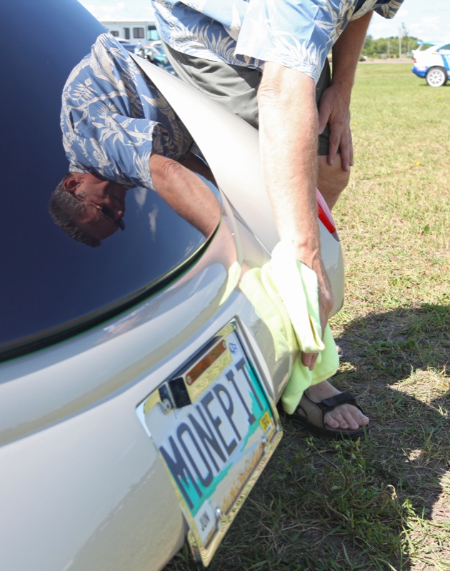 Brian O’Donohoe had his white 1973 MG Midget on display Sunday, a unique car as it was one of the last years the model could legally be made with metal bumpers.