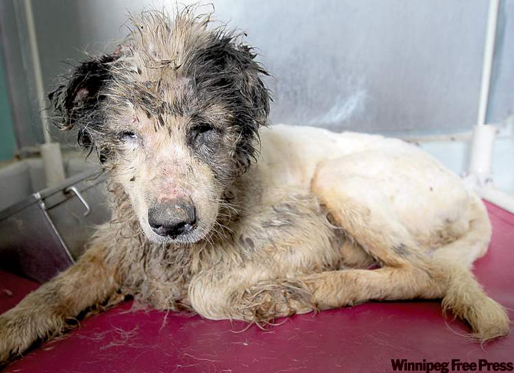 Most of the dogs had urine burns on their paws from standing in their own excrement.