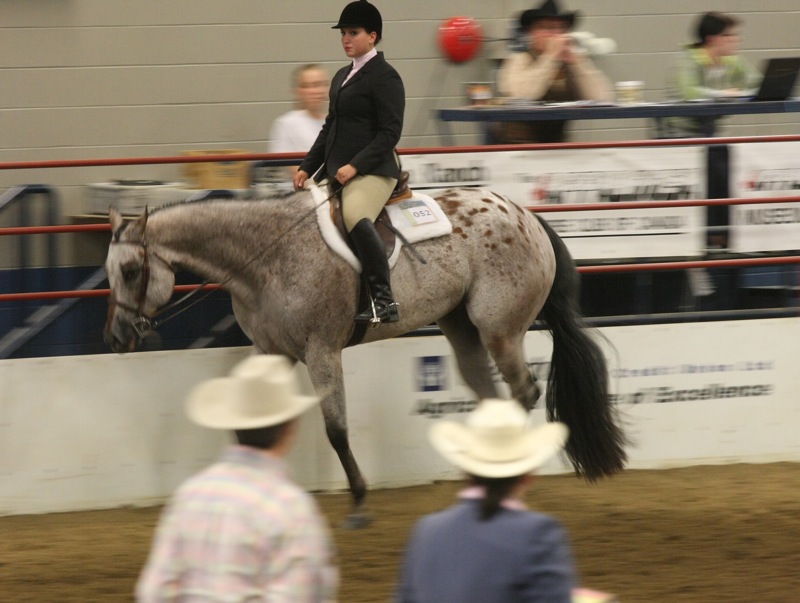 A competitor leaves the show ring at the Westoba Agriculture Centre of Excellence during the Canadian National Appaloosa Show on Wednesday afternoon.