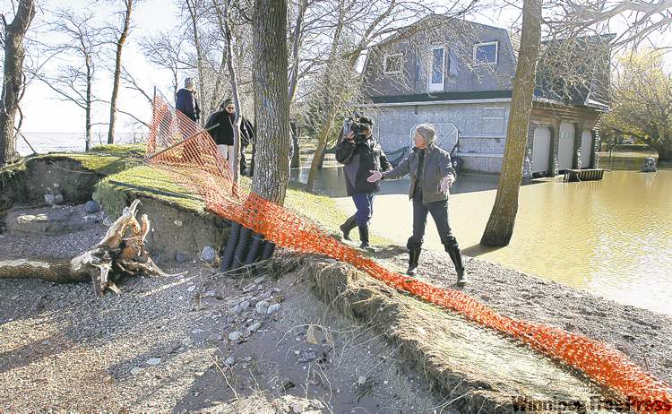 At Stephenson Point immediately to the south, lakefront homeowner Ann Cook took Melnick on a tour of her flood-damaged property, caused when powerful waves broke through an earth dike built three years ago to protect against such things.