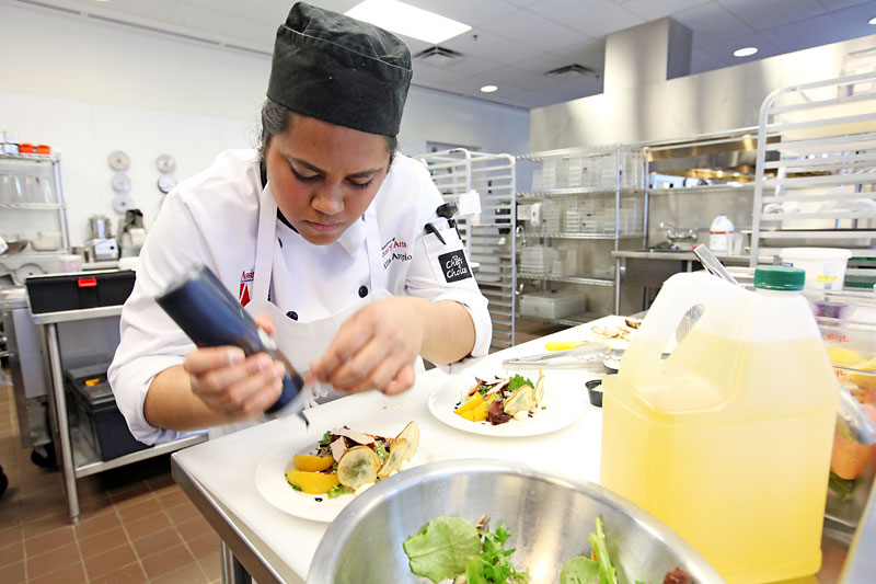 “The students are cooking under a time constraint and they’re feeling the pressure,” Manitoba Institute of Culinary of Arts chef instructor Bryan Hendricks said while competitors carefully boiled, braised and broiled behind him in the kitchen on ACC’s North Hill campus.