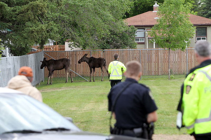 Brandon police officers on patrol notified Manitoba Conservation officials about the moose that had been spotted on the school grounds in the early morning hours. By 6:30 a.m., 26th Street and Park Avenue were cordoned off near the school, and police officers were positioned around the exits of the school yard.