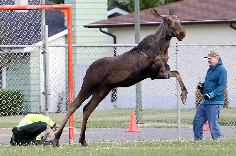 Loose moose caught, released