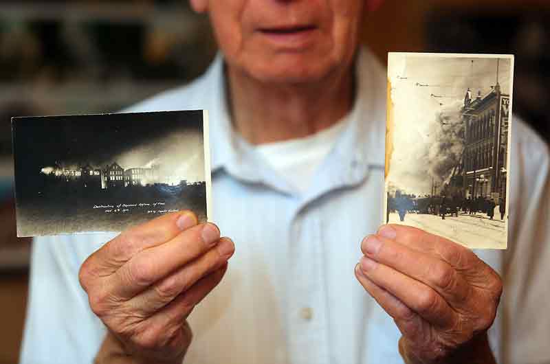 His most valuable postcard is of Brandon Mayor John Fleming, jacket off and in suit vest, preparing to drive the last spike into the street car track. It’s valued at more than $100. Stothard, in his 80s, can still remember the street car system. “It never made a profit. Eventually, they just closed it down.” It halted in 1932 after two decades of losses.