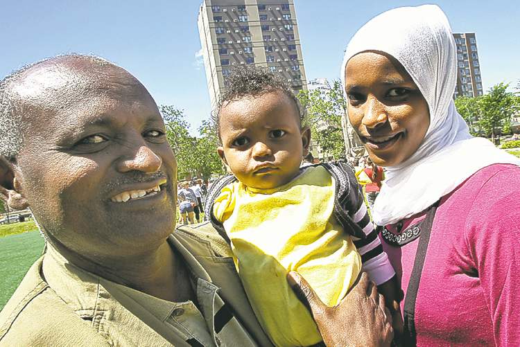 On Monday, the Kawo family — 14-month-old Milki (which means “success” in her mother tongue, Oromo), dad Kasim and mom Balkisa — attended a rally in Central Park. The National Day of Action for Refugee Health Care was organized by doctors across Canada and held in 19 cities. In Winnipeg, the speakers applauded the province for covering the Interim Federal Health Program cuts and asked the federal government to restore benefits to new refugees across Canada.