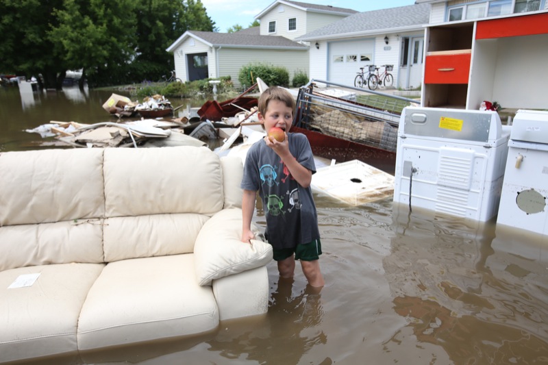 Flood-soaked carpeting, appliances and couches that fell victim to the first flood floated down the streets.