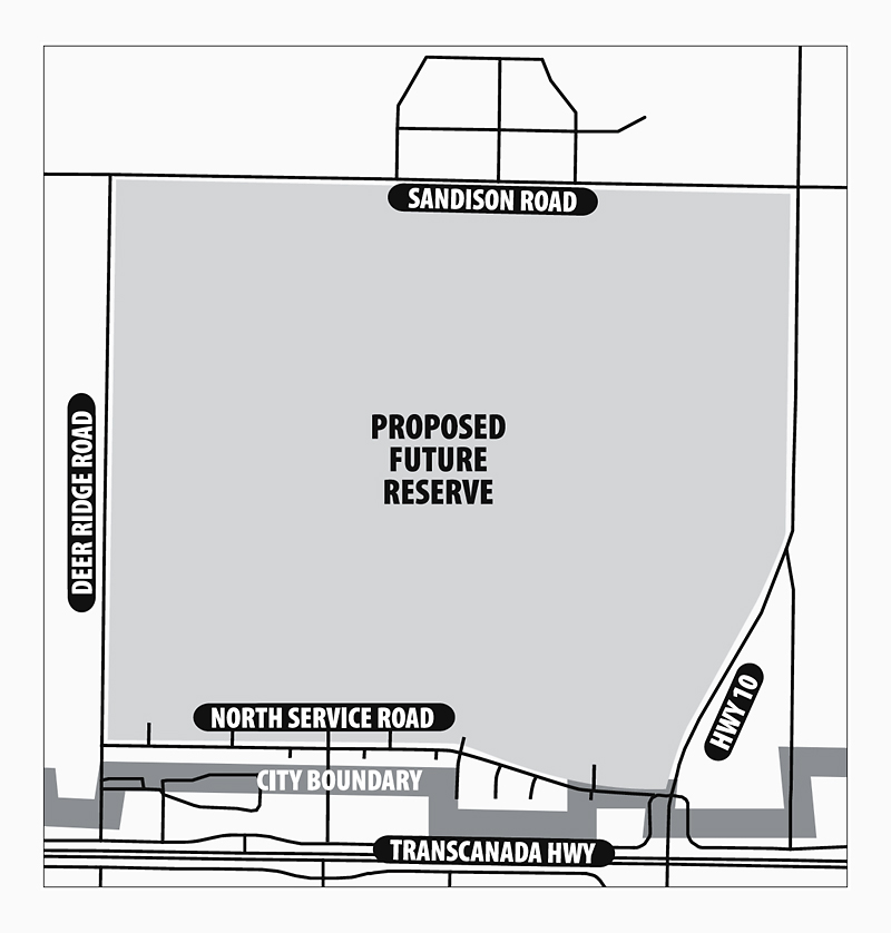 It spans from the new North Service Road to Sandison Road south of Brandon Municipal Airport, and from Highway 10 to Deer Ridge Road.