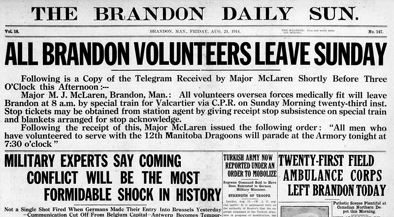 “There seems to be an air of sadness throughout the city as people begin to realize that their loved ones are going to what promises to be a war of long duration, and that many of them may never see Canada again,” the Sun wrote on the front page the day before the scheduled departure.