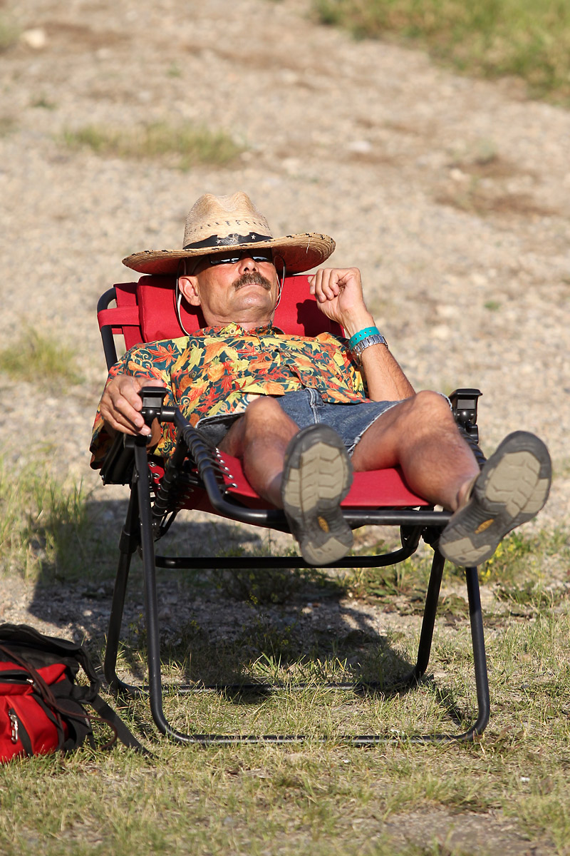 Tim Smith /The Brandon Sun A festival-goer relaxes in front of the main stage as The Grapes of Wrath perform at Rockin’ the fields of Minnedosa on Saturday evening.