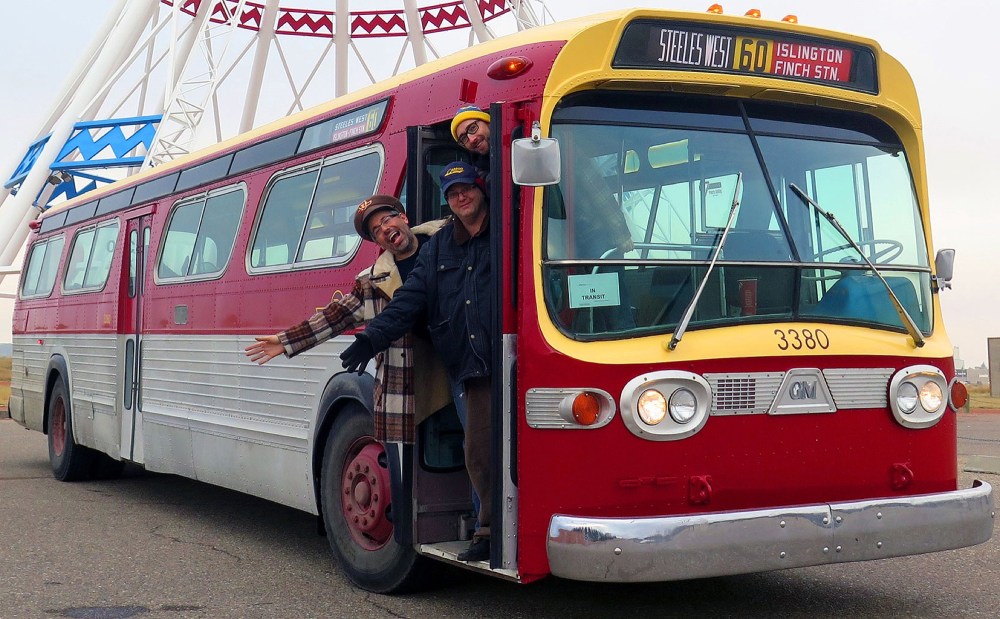 He had the bus painted like Toronto’s former fleet, and flew into Calgary to begin driving east with two of his employees at Rapido Trains.