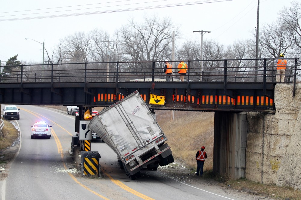 After yet another semi truck crashed into the low bridge in Kemnay, Brandon RCMP put out a notice to remind truckers to “abide by the signage posted” at the rail crossing.
