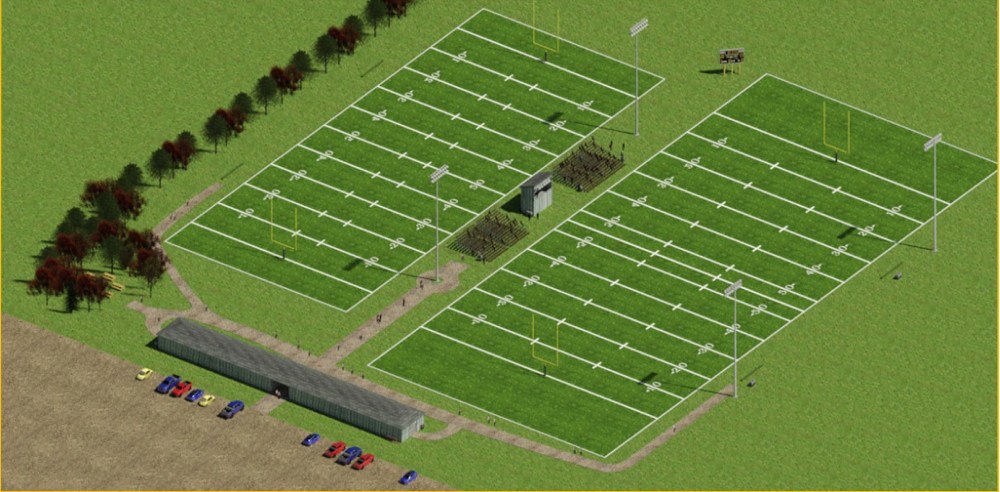 Phase 1 will include the construction of two football fields, installation of irrigation and goal posts. Phase 2 will see the installation of poles and field lights, construction of a parking lot and scoreboard installation. Phase 3 includes the construction of a clubhouse building, field equipment shed, picnic area, pathways, signage, landscaping and fencing.