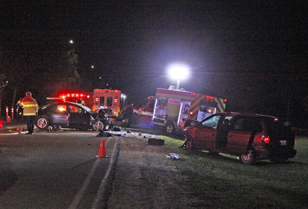 The scene of a three-vehicle collision on Kirkcaldy Drive on Tuesday evening, in which six people were injured. (Photo courtesy Liam Pattison)