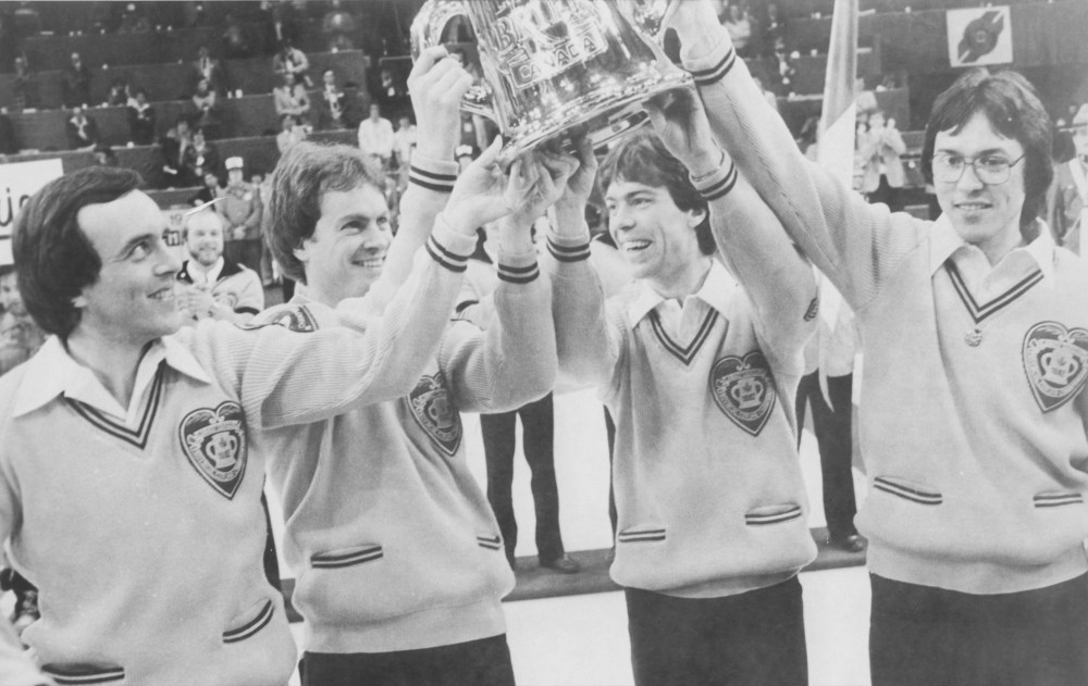 Al Hackner, right, and his Northern Ontario foursome captured the 1982 men's curling championship at the Keystone Centre.