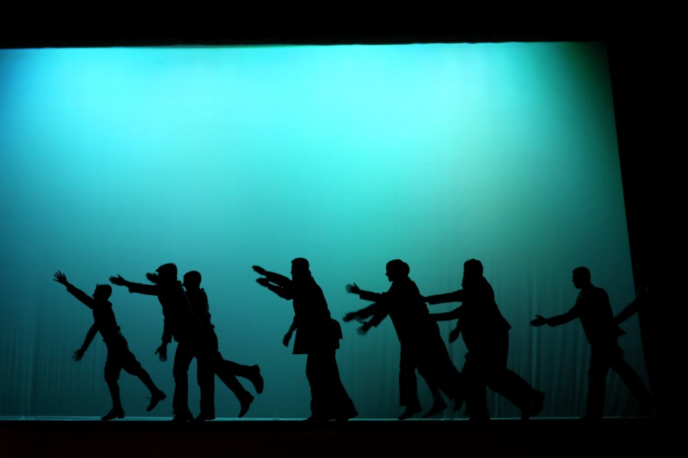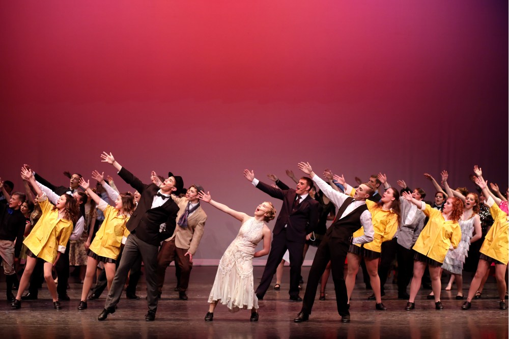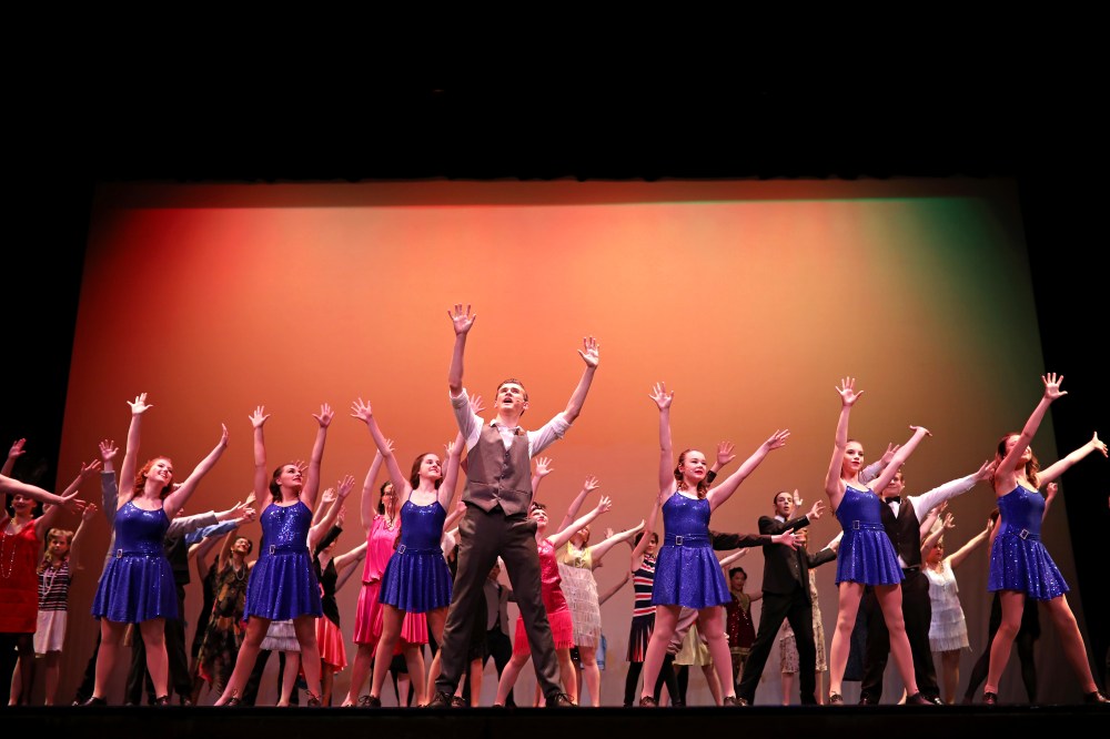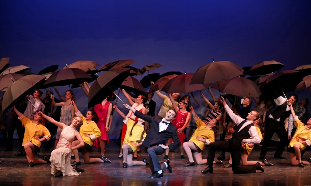Cast members for Ecole Secondaire Neelin High School's production of Singing in the Rain run through a dress rehearsal at the Western Manitoba Centennial Auditorium on Wednesday. The play opens Thursday and runs until Saturday. (Tim Smith/The Brandon Sun)