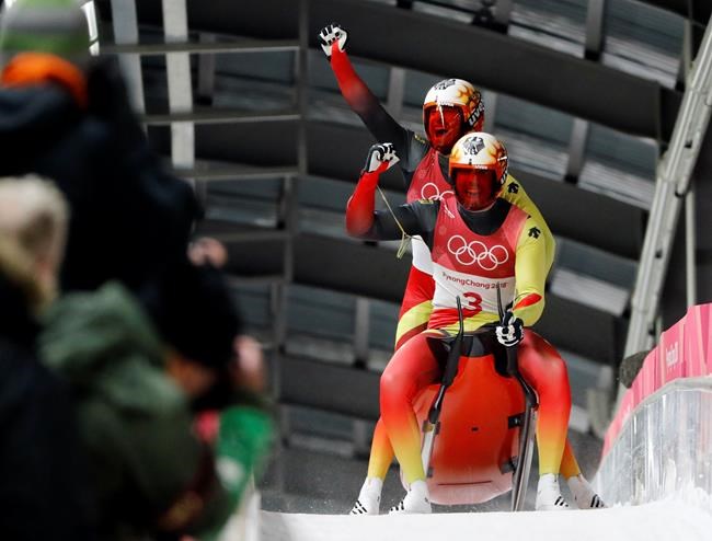 Tristan Walker, front, and Justin Snith of Canada react after competing in heat four of men's luge doubles during the 2018 Olympic Winter Games in Pyeongchang, South Korea on Wednesday, February 14, 2018. Walker and Snith finished fifth. THE CANADIAN PRESS/Nathan DenetteGold medal winner Shaun White, of the United States, celebrates after finishing his run during the men's halfpipe finals at Phoenix Snow Park at the 2018 Winter Olympics in Pyeongchang, South Korea, Wednesday, Feb. 14, 2018.(AP Photo/Lee Jin-man)CP