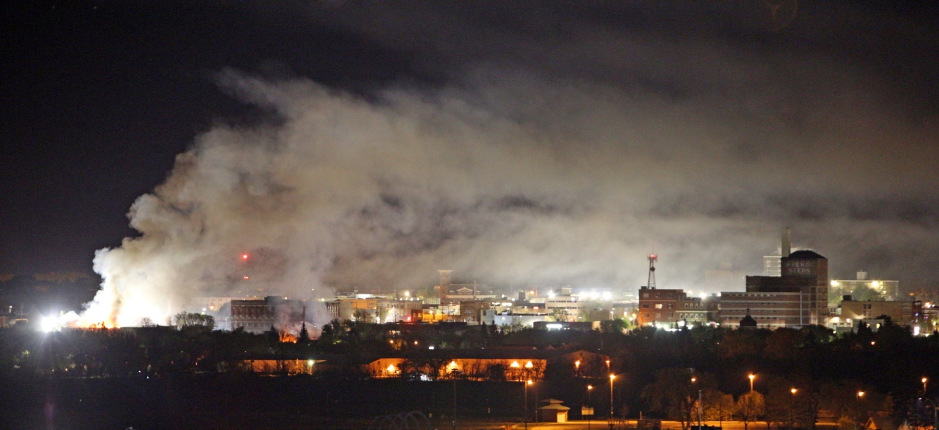 Within a couple of hours, strong winds had carried embers across the street to the Massey Manor residential building and to the beer vendor and former nightclub on Rosser Avenue, setting both buildings on fire.