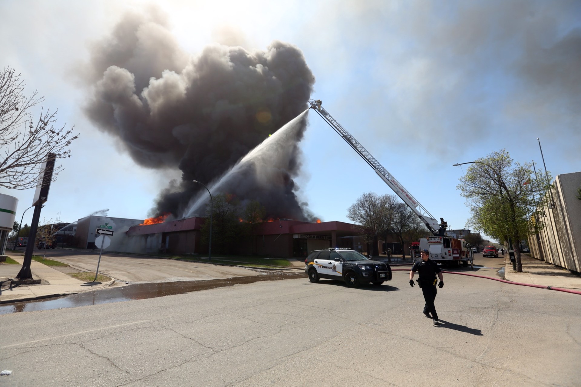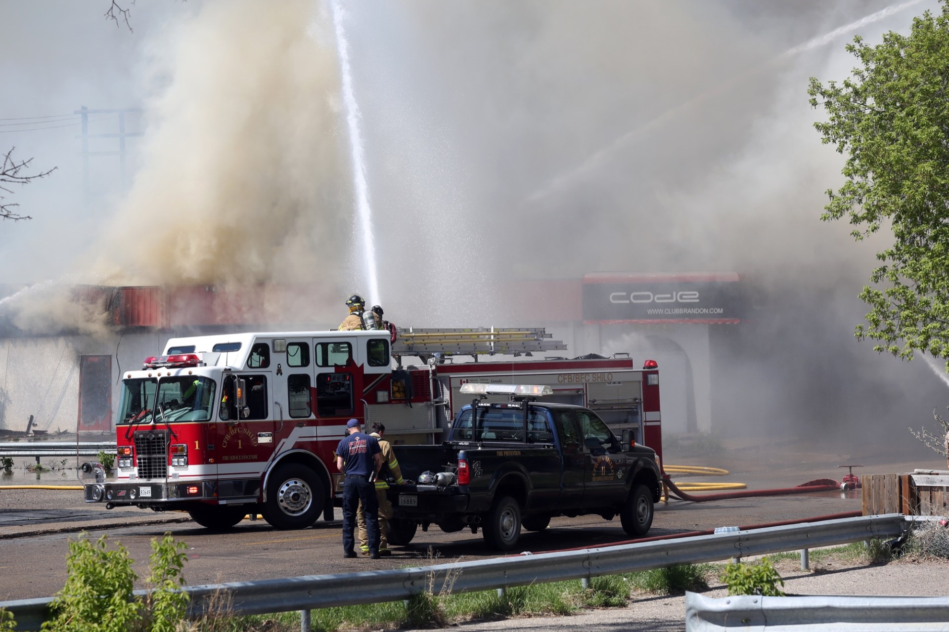 A city spokesperson said crews were also working to extinguish a fire on the east and west side of the Collyer’s Sales and Service, Brandon Boxing Club, and Kazic Kontracting building next door to Christie’s. Firefighters were still trying to put out the fire as of midnight.