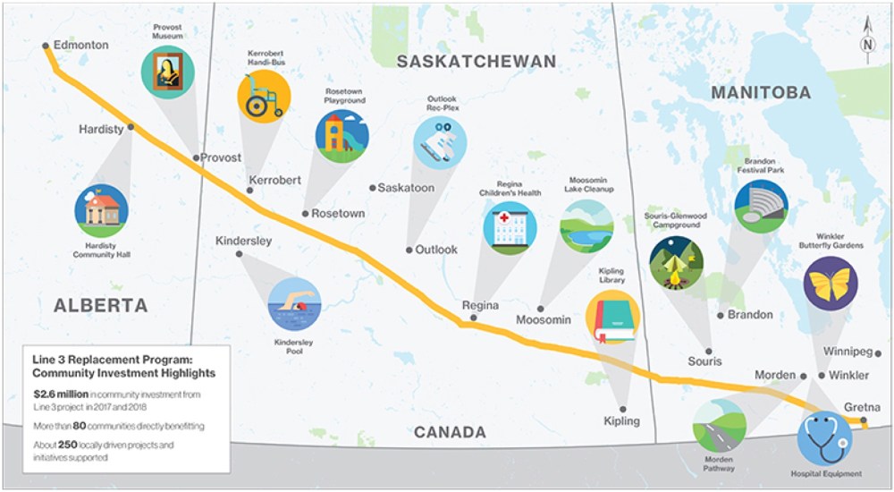 Pumping more than a quarter-million dollars of investment into Westman, Enbridge is striving to support communities that follow the Line 3 oil pipeline replacement project’s path across the Prairie provinces.
