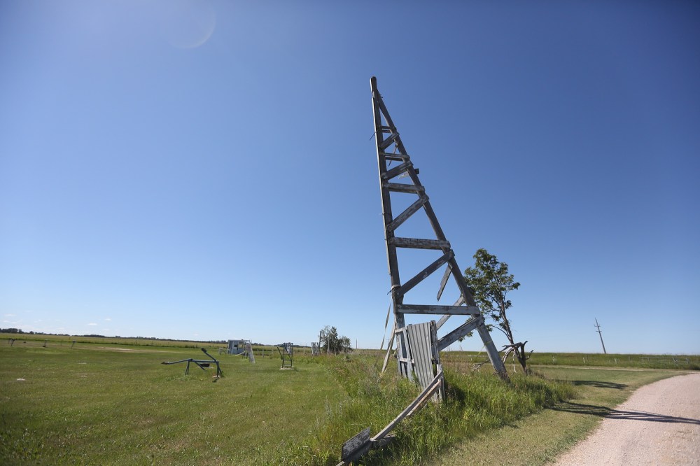 Tyler Clarke/The Brandon Sun The final standing piece of the Shamrock Drive-In theatre’s screen is pictured.