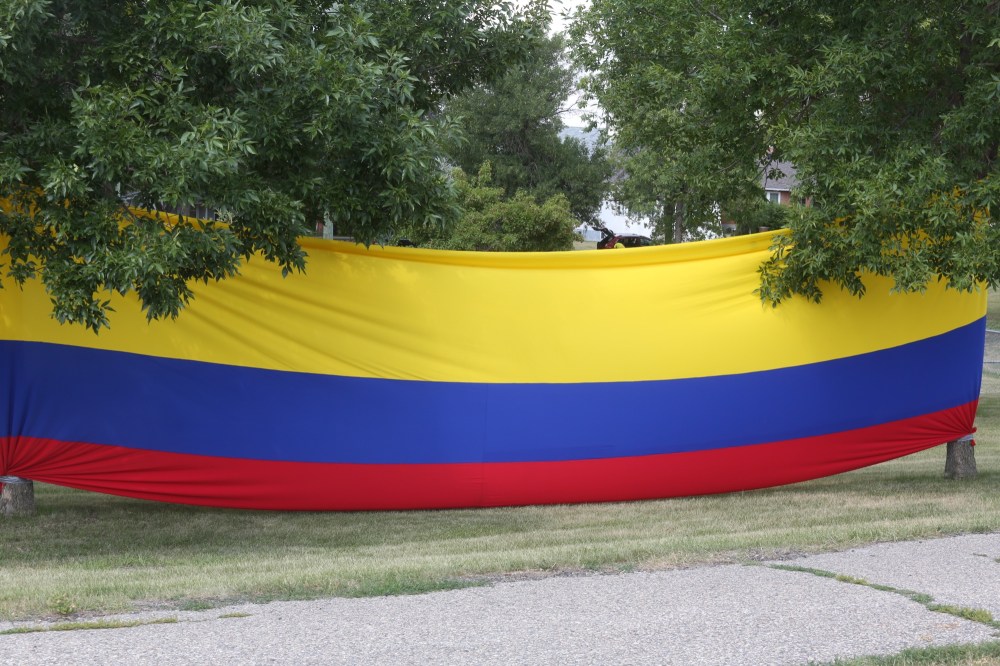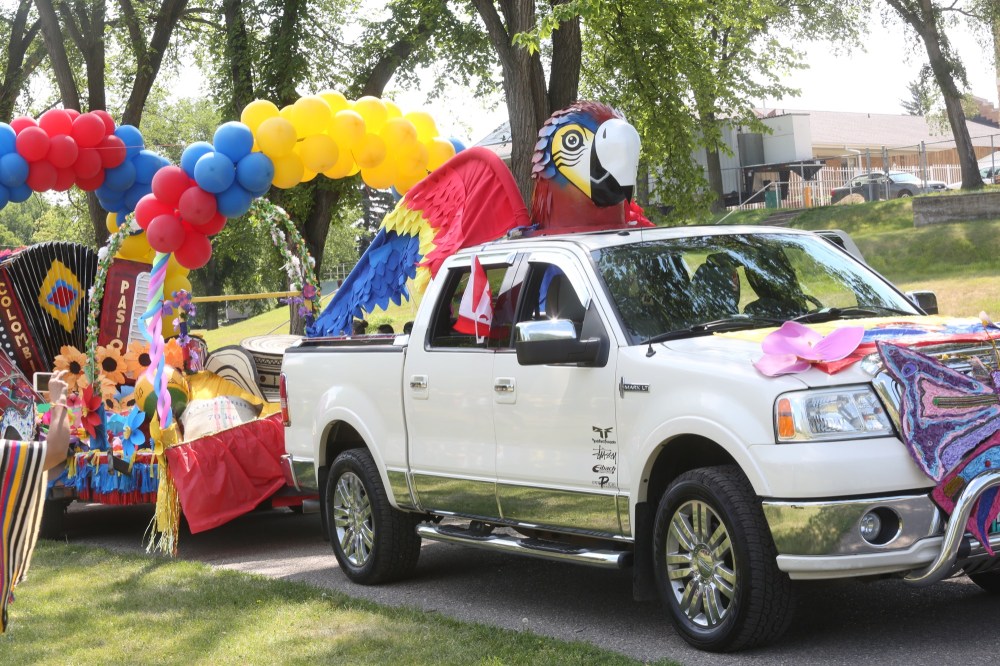 Dozens of cars and floats decked out with Colombian colours and props paraded along 18th Street and Victoria Avenue, while drivers honked and waved to other drivers and pedestrians along the way, before ending up at the park. A performance of both the Canadian and Colombian national anthems were slated for later in the afternoon.