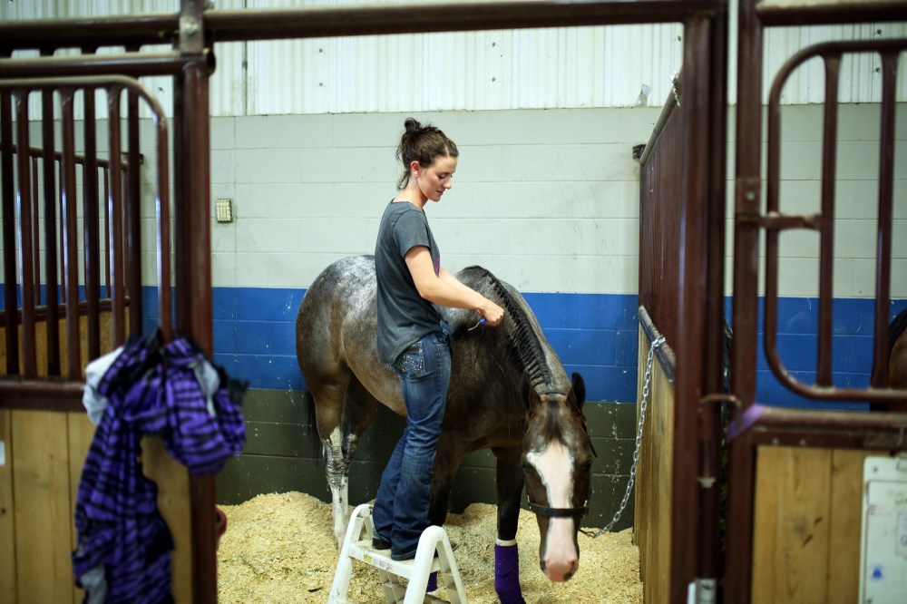 The 22-year-old Appaloosa horse still had to have a bath and his mane banded before he would be ready to go, but he appeared to be in no rush as he enjoyed his brushing.
