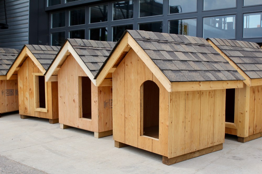The project was spearheaded by Brandon real estate agent Zach Munn, who last year approached Kevin Poirier, chair of construction trades at Assiniboine, about building the doghouses.