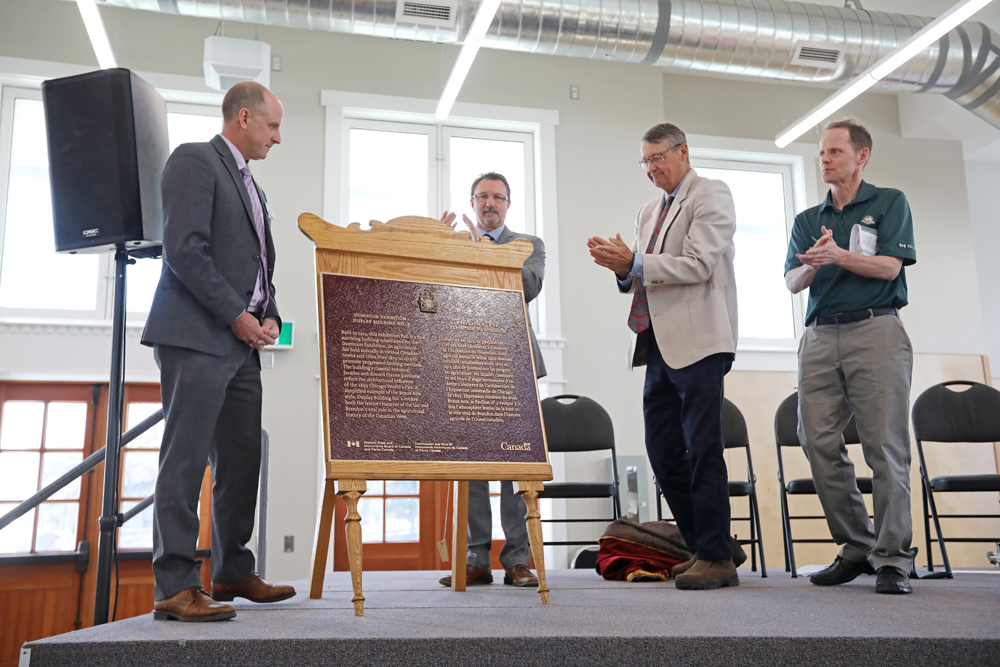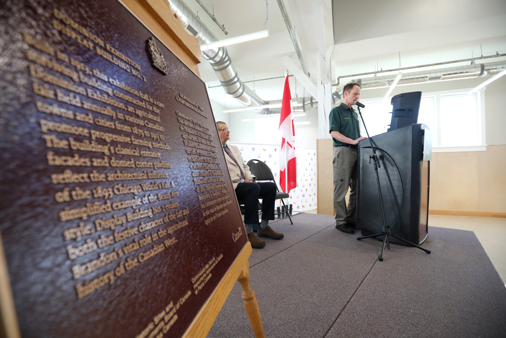 With the unveiling of an official plaque on Thursday morning, the Canadian government recognized Brandon’s recently restored Display Building No. 2 yesterday as a structure with national historical significance.