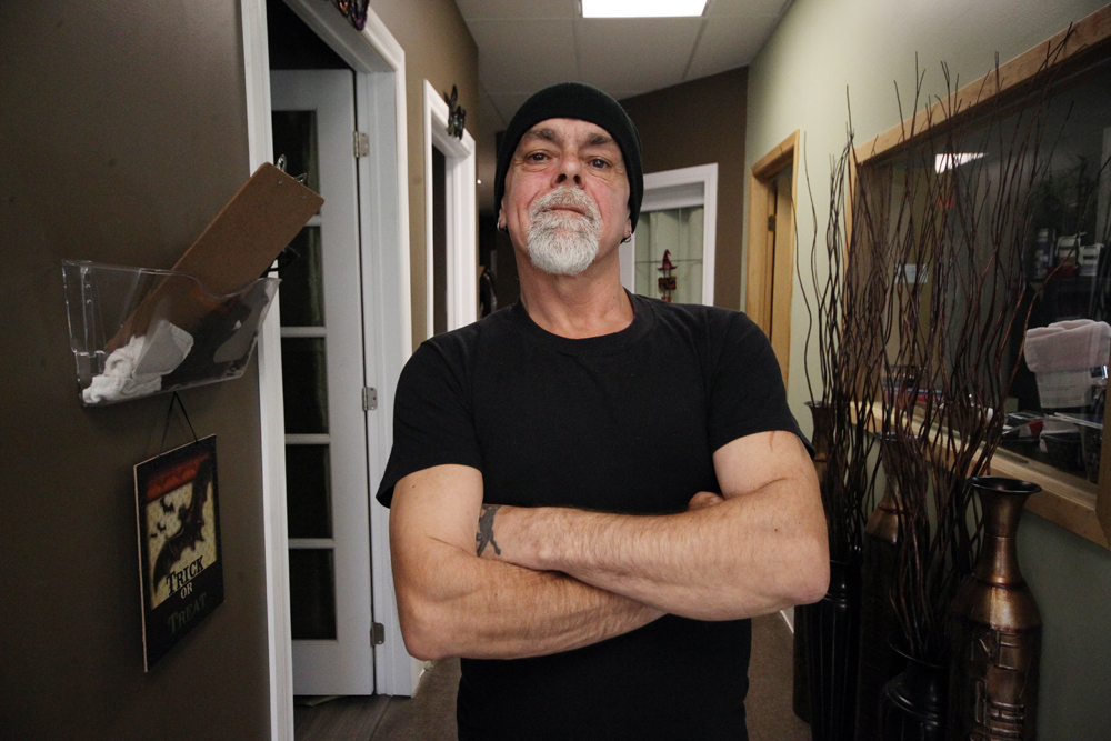 Physiologist Mike Petrowski at Rejuvenate in Brandon. Petrowski plans to release a phone app for Android that locks your phone while driving and corrects your posture. (Michael Lee/The Brandon Sun)