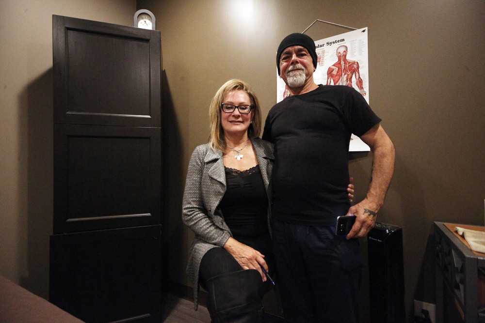 Mike Petrowski, right, and his business partner with TextRite Tannis Ortynsky, owner of Rejuvenate in Brandon. (Michael Lee/The Brandon Sun)
