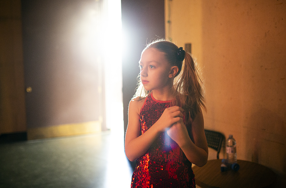 Adeline Galinski waits backstage to perform her dance in the Dance, Self-choreography Solo, Own Choice, 8 Years & Under category during the Dance portion of the Brandon Festival of the Arts at the Western Manitoba Centennial Auditorium on Wednesday.
