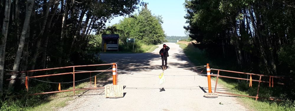 Wesley Bone stands at one of the blockades he's erected at the Lake Audy Campground at Riding Mountain National Park. (Submitted)