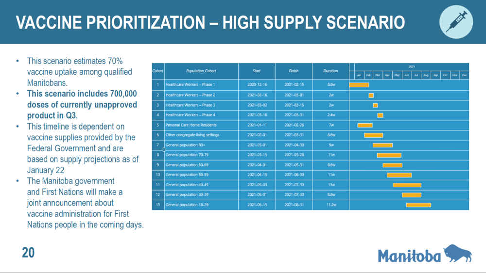 Reimer noted the timelines depend on vaccine supplies reaching the province.