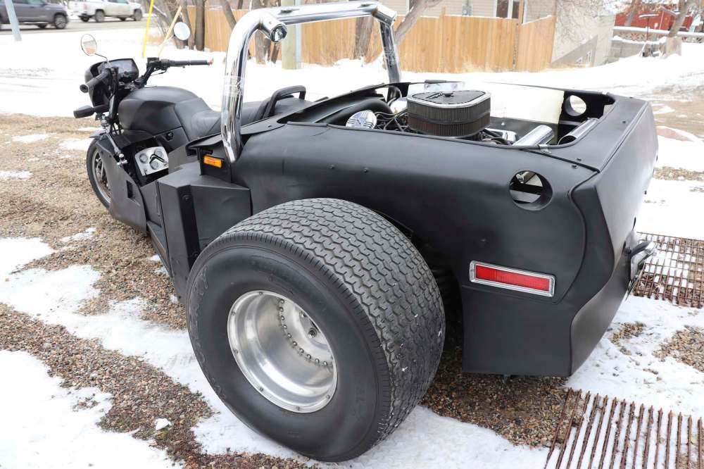 “So … it’s still like driving a motorcycle, but all behind me is a V8 engine with the 425 Cadillac transaxle,” he said.