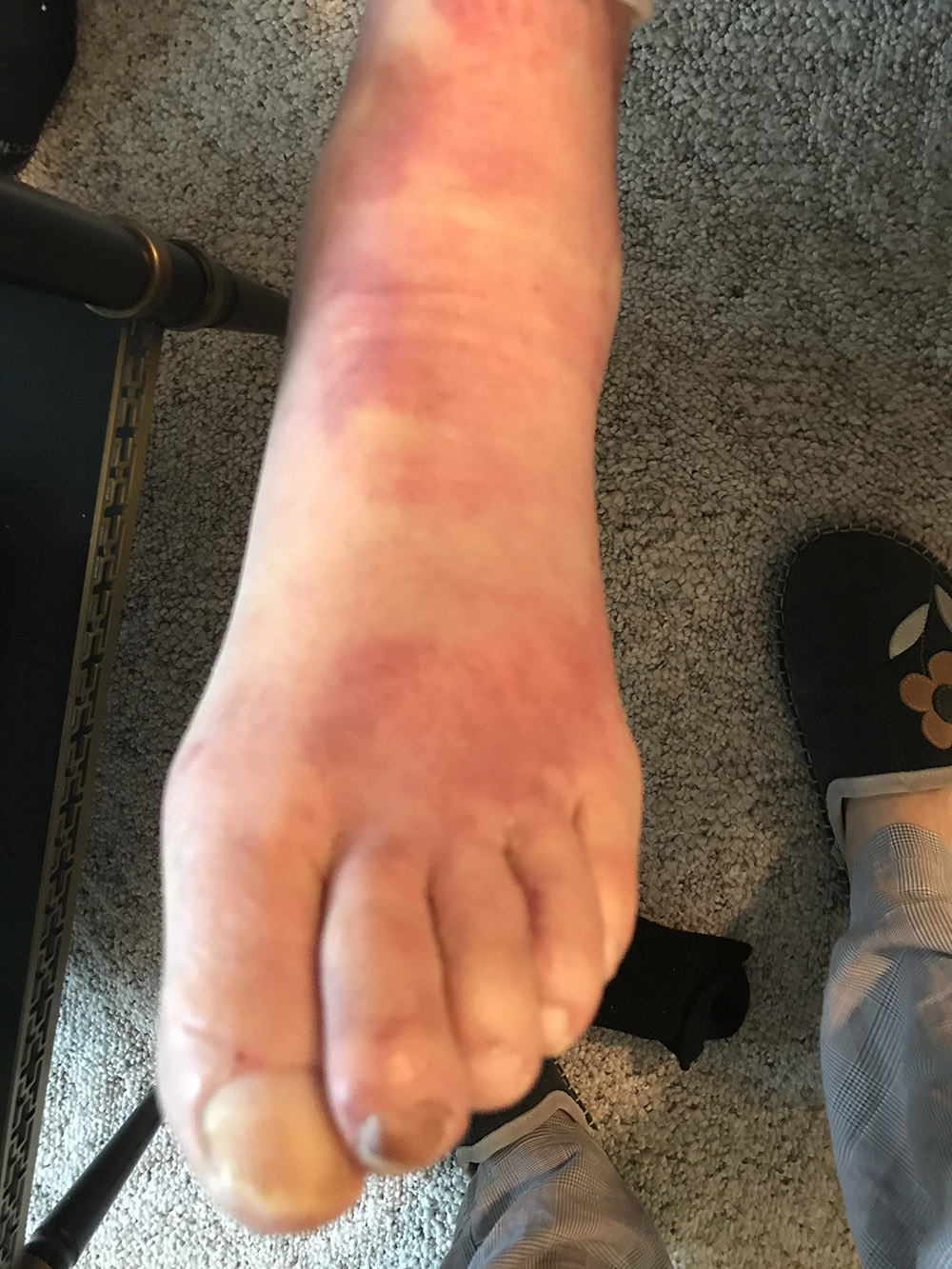 These photos also highlight some severe bruising and swelling that ran up and down his feet, which Playter says is the result of the bandages being wound too tight.