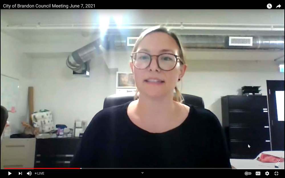 Gillian Sullivan of Sneath Projects explains how the Park Community Centre could be restored for public use during Monday evening’s Brandon City Council meeting. (Screenshot)