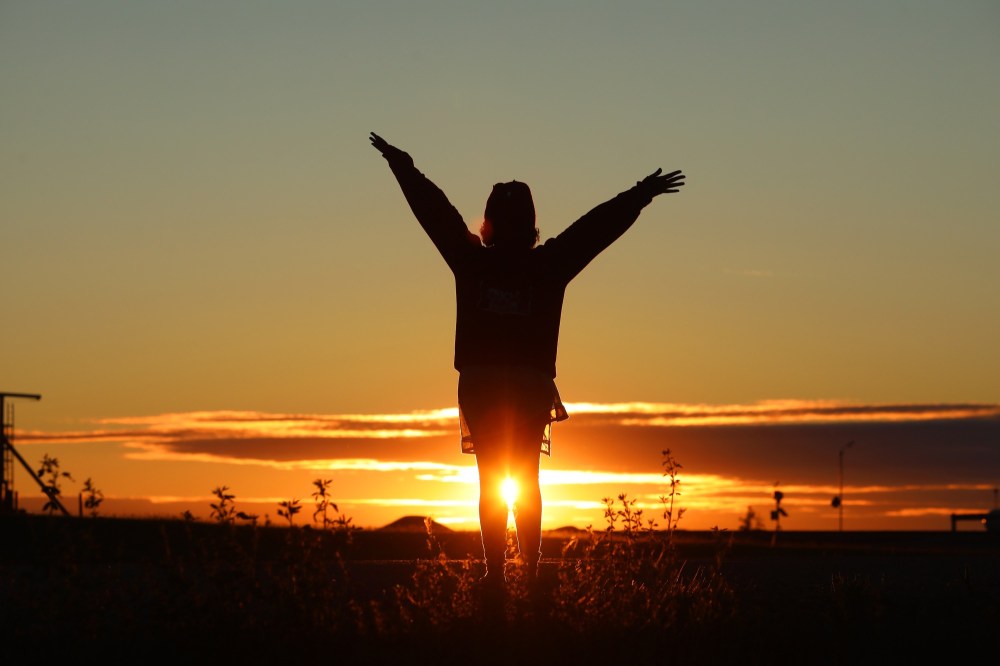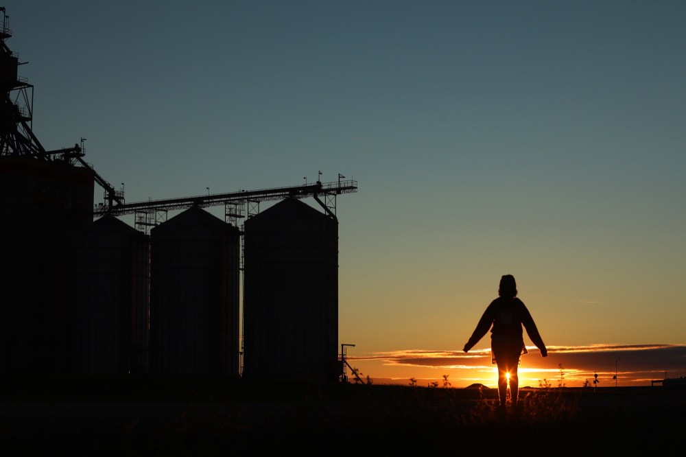 Kiran Nazish greets the morning sunrise near the Richardson Pioneer Grain Terminal at Kemnay, Manitoba early Monday morning, the morning after solstice, the longest day of the year in the northern hemisphere in terms of daylight. The official solstice took place at 03:32 UTC (Universal Coordinated Time) on Monday, June 21, or 10:32 PM Central Standard Time on Sunday, June 20th in Manitoba. (Tim Smith/The Brandon Sun)
