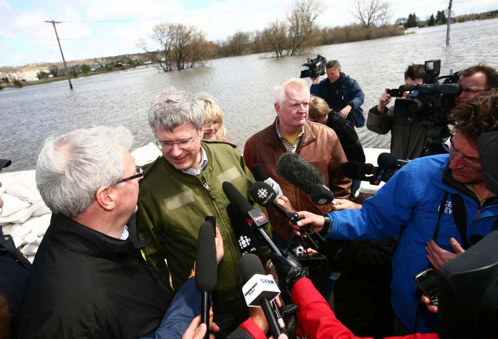 As the work to strengthen the dike continued, Prime Minister Stephen Harper visited the city less than two weeks after winning his first majority government.