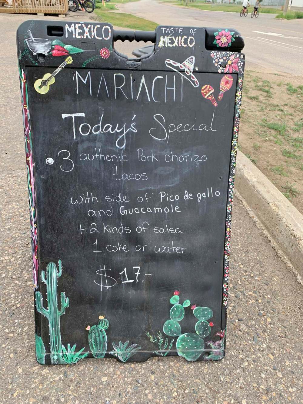 A brightly coloured sandwich board sits to one side at Mariachi Mexican Tacos. (Kimberley Kielley/The Brandon Sun)
