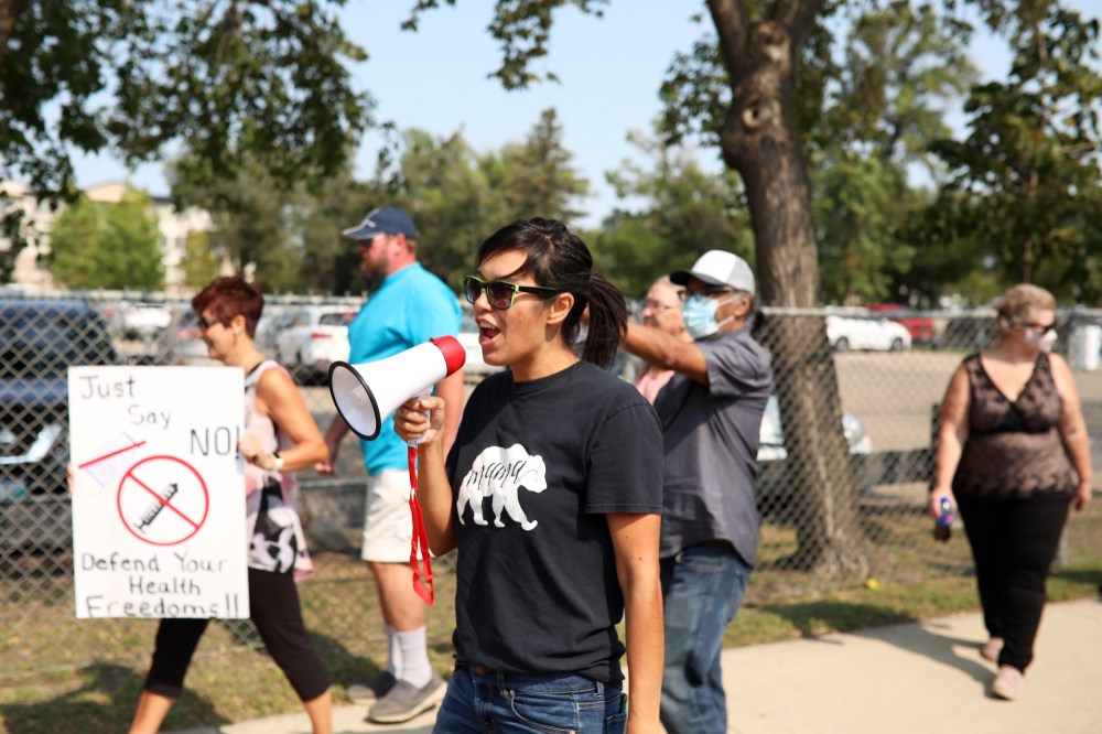 Driedger said she was “flabbergasted” at the turnout for the event. She said the group was fighting for everyone’s rights, including the people who agree with the vaccine mandate.