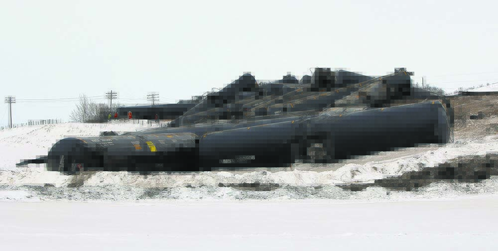 Fourteen cars ruptured, spilling a combined 820,000 litres of oil. The incident happened in the middle of the winter and crews built a berm around the spill to contain the oil. At the time, there was concern the oil could spill into the Assiniboine River, but it was all recovered.