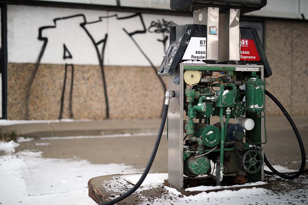 The downtown gas station, which is next to the Brandon Neighbourhood Renewal Corporation, is closed and in a serious state of disrepair. There is a large hole in the roof with pigeons roosting in it and garbage strewn around the gas pumps.