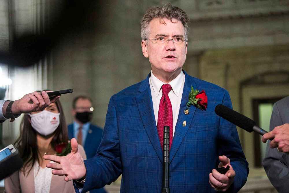 John Woods/The Canadian Press Manitoba Premier Heather Stefanson speaks to media prior to the reading of the Speech from the Throne at the Manitoba Legislature in Winnipeg on Nov. 23.