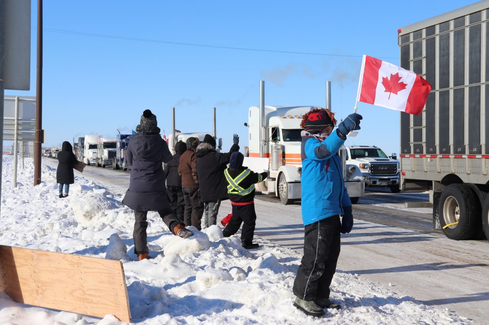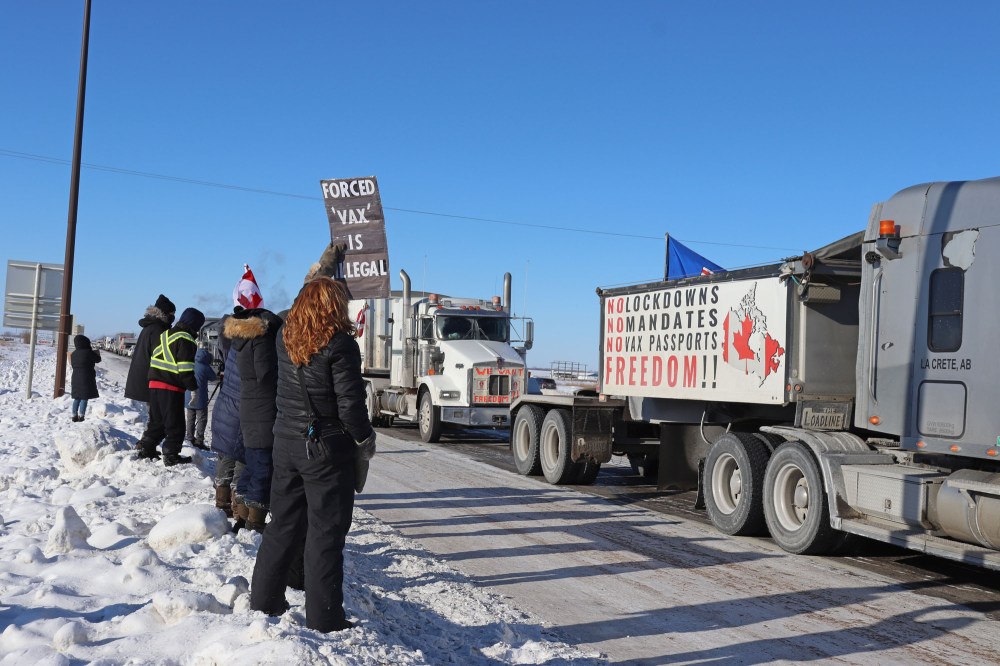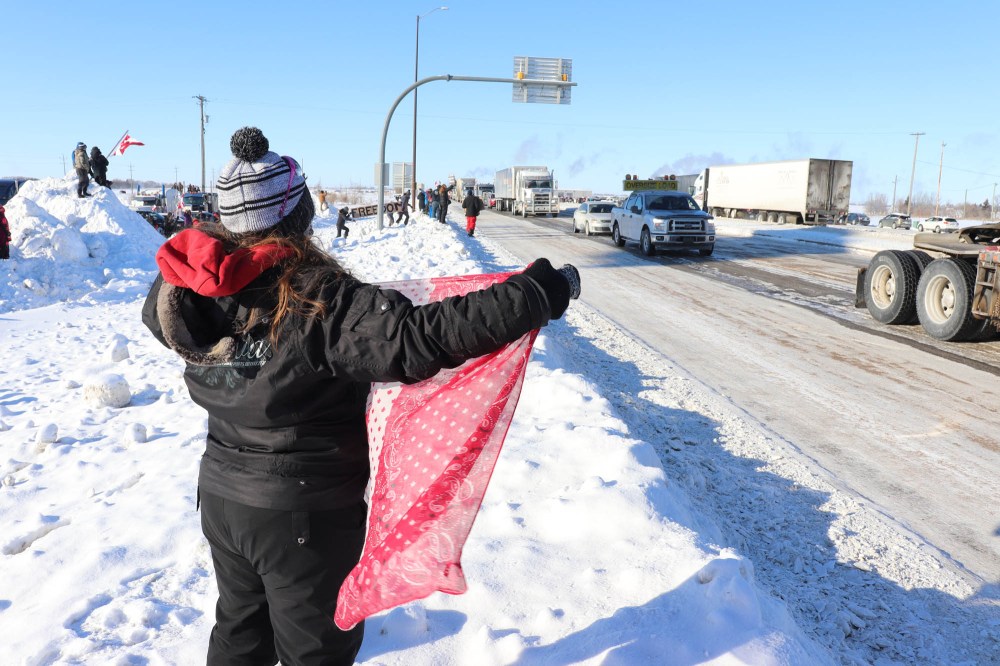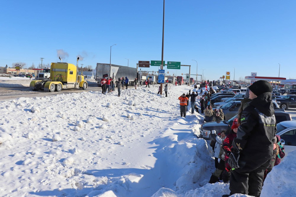 Hundreds of Westman residents endured an extreme cold warning on Tuesday morning to come out and watch the Freedom Rally convoy drive through Brandon.