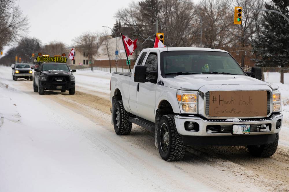 Another convoy of truckers drove through Brandon on Saturday, calling for an end to COVID-19 public health mandates while throwing support behind the protest in Ottawa.