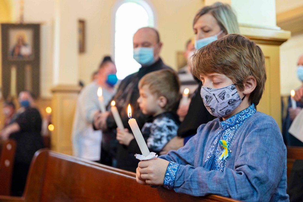 Victor Samotiy, 7, attends the Holy Ghost Ukrainian Orthodox Church prayer service in support of Ukraine Sunday. In response to the Russian invasion of the country the Ukrainian Orthodox Church of Canada has blessed all churches to be active centres of prayer and �havens for the storm-tossed� to provide solace to communities. (Chelsea Kemp/The Brandon Sun)