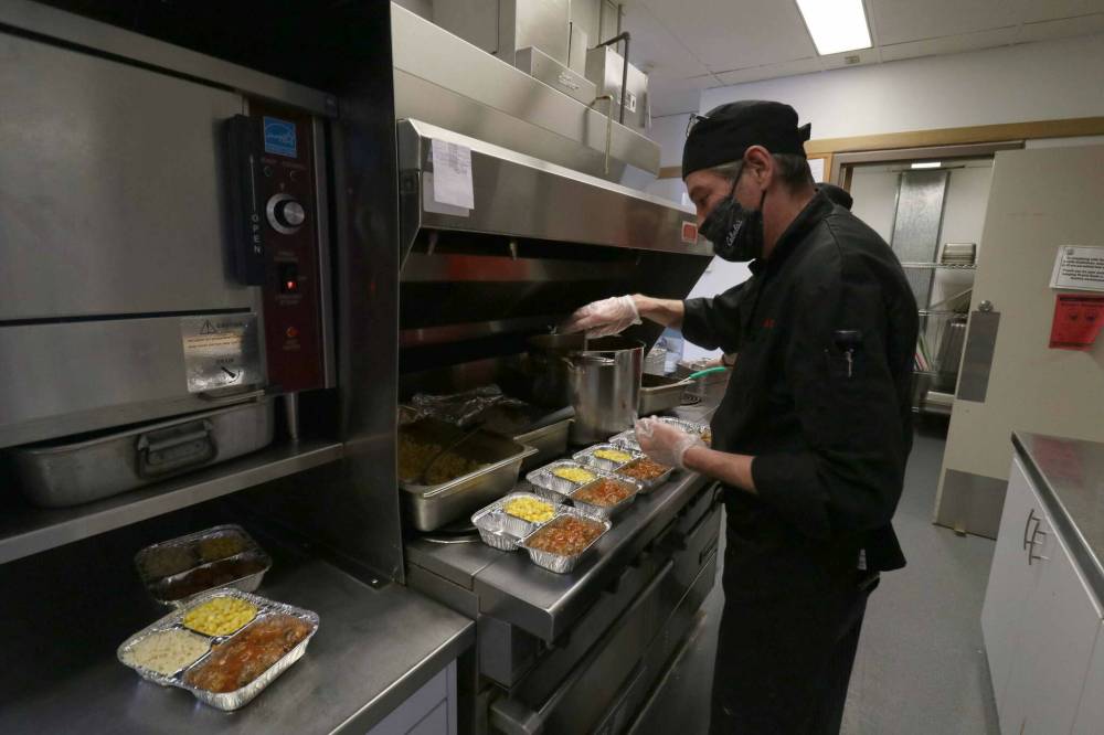 At Prairie Oasis Senior Centre, kitchen staff prepared 204 meals for Everyone Eats Brandon and an additional 40 Meals on Wheels dinners for delivery on Friday.