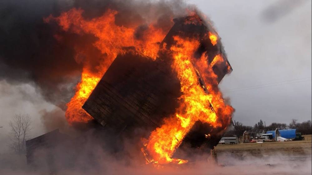 The wind changed direction, blowing an ember toward the elevator, where it was sucked into a football-sized hole and ignited the blaze nearly on contact. Once the fire started, the team knocked the elevator over to stop the fire from igniting nearby power lines. Emergency crews arrived shortly after to take over.