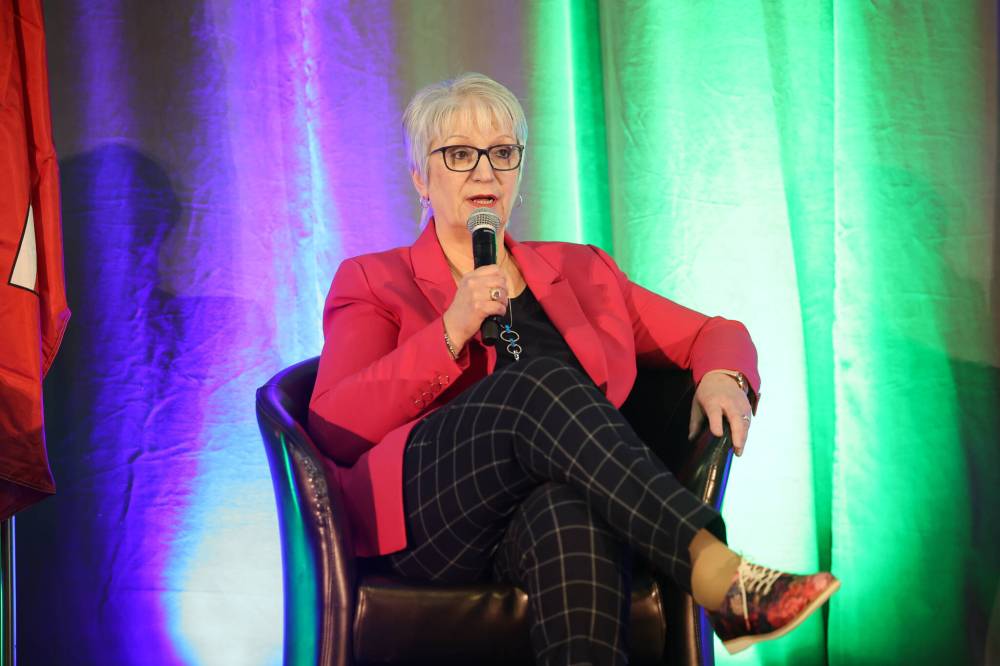 Municipal Relations Minister Eileen Clarke speaks at the municipal fireside chat during the Association of Manitoba Municipalities spring convention at the Keystone Centre Thursday.